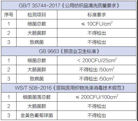▲醫用織物和酒店織物洗滌后的衛生標準